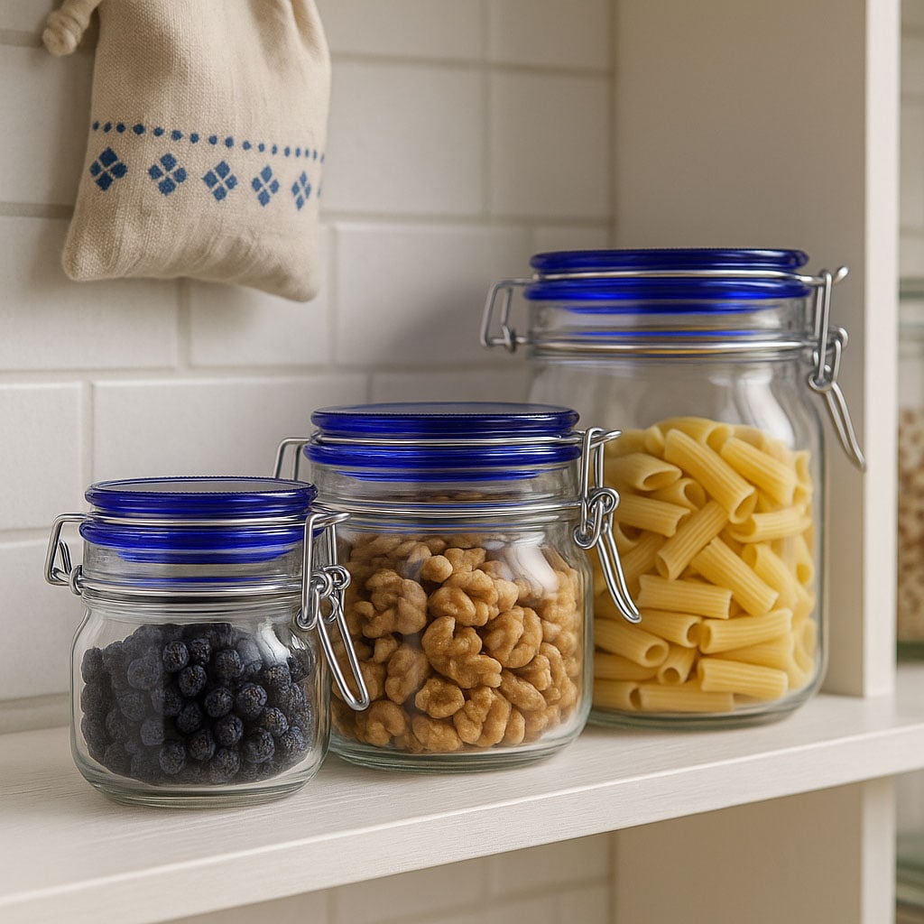 “Fido Blue Top” -sarja yhdistää testatun toiminnallisuuden moderniin design-kohokohtaan. Italialaisen perheyrityksen Bormioli Roccon valmistamat laadukkaat lankakantaiset purkit vakuuttavat neliskulmaisella pohjamuodollaan ja tyylikkäällä sinisellä lasikannella, joka antaa niille esteettisen ilmeen. Saatavana 500–2000 ml tilavuuksina, “Fido Blue Top” tarjoaa monipuolisia käyttötarkoituksia – kotitekoisten herkkujen säilömisestä tyylikkääseen varastointiin. Mukana tuleva lankakahva yhdessä lasikannen ja kumitiivisteen kanssa takaa ilmatiiviin sulkeutumisen.