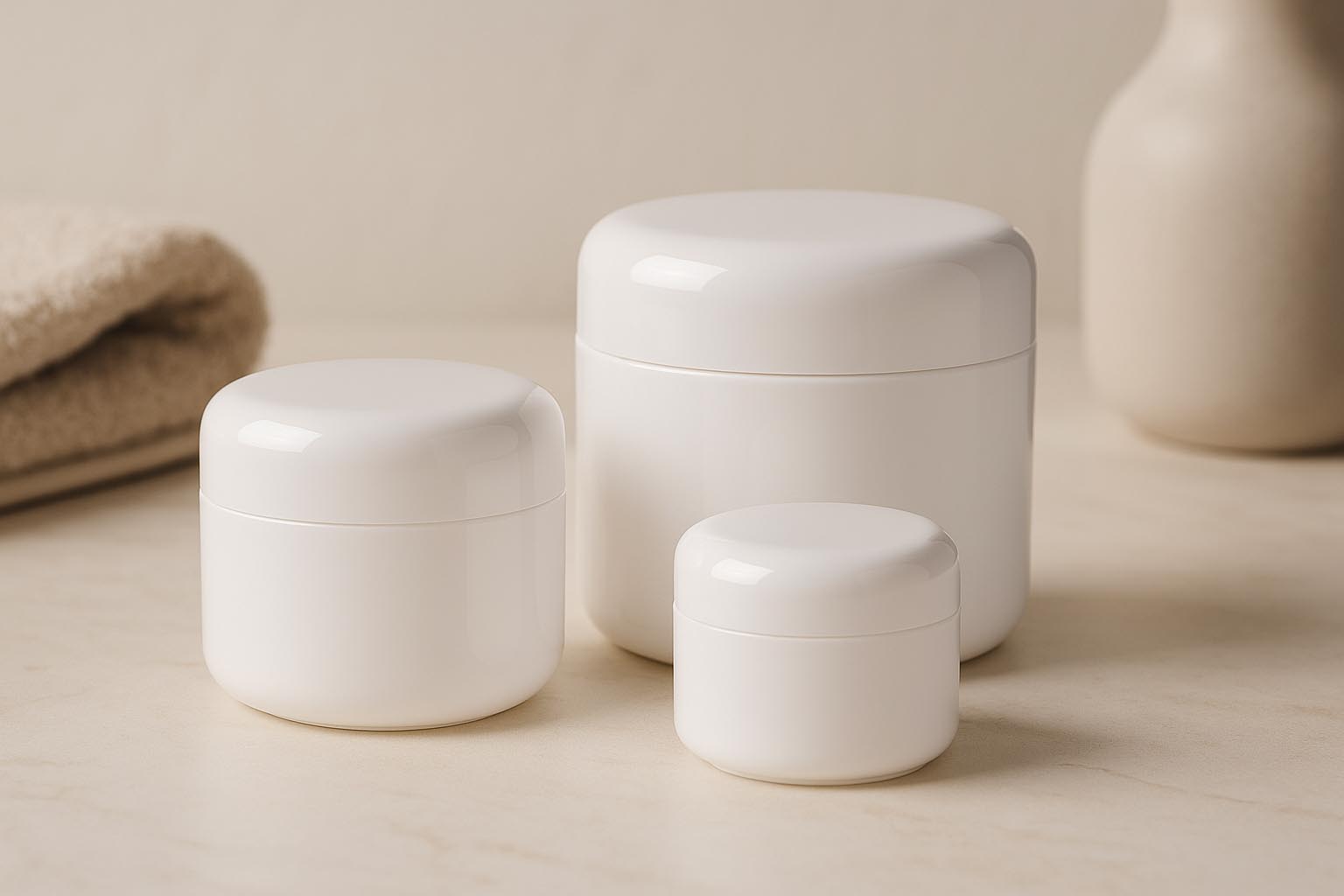 "Bianca"-purkkeja on saatavana eri kokoisina 5 ml:stä 200 ml:iin, ja ne soveltuvat erinomaisesti voiteille, voiteille, voiteille ja muille kosmetiikkavalmisteille. Kätevän ruuvikorkin ansiosta purkit sulkeutuvat tiiviisti ja avautuvat helposti. Sopivia kansia on saatavilla valikoimastamme, jotta voidaan tarjota optimaalinen sovitus yksilöllisiin tarpeisiin.
