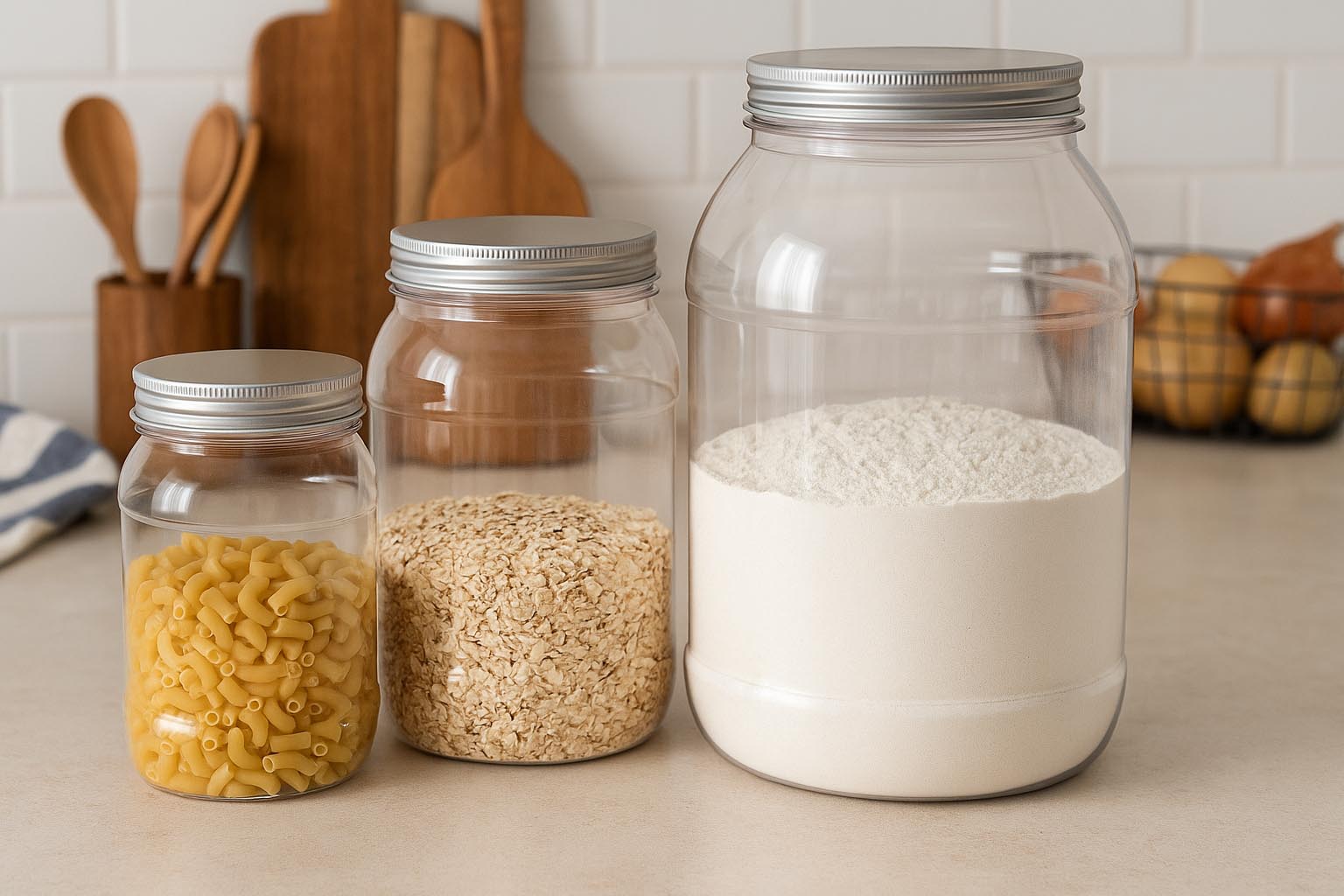 Lulu-sarja tarjoaa innovatiivisen ja käytännöllisen ratkaisun elintarvikkeiden ja muiden tuotteiden turvalliseen säilytykseen. Nämä elintarvikekelpoiset PET-astiat vakuuttavat kestävällä valmistuksellaan ja monipuolisella käytettävyydellään. Pienen painonsa ja korkean vakauden ansiosta ne sopivat erinomaisesti päivittäiseen käyttöön. Tilavuudeltaan 1000–4000 ml ne tarjoavat runsaasti tilaa erilaisille sisällöille. Kierrekaula 100/400 takaa luotettavan tiivistyksen, ja sopivat kannet löytyvät valikoimastamme. Lulu yhdistää toiminnallisuuden, laadun ja monipuolisuuden, ja on täydellinen valinta hygieniseen ja turvalliseen säilytykseen.
