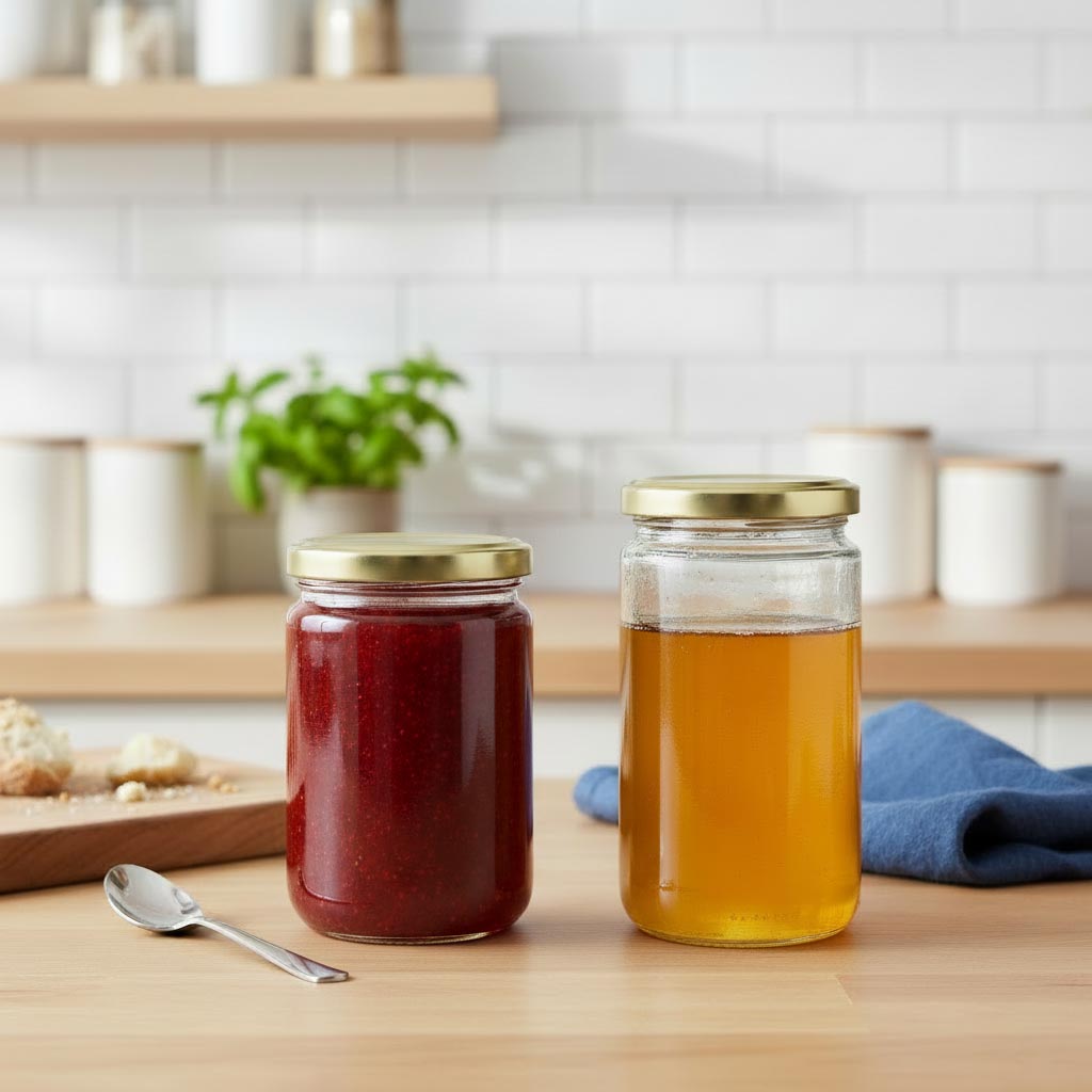 Flaschenlandin "Rundglas"-tuotesarja sisältää korkealaatuisia, monipuolisia lasiastioita, jotka erottuvat käytännöllisellä Twist-Off-korkilla (TO 53) ja 212 ml tilavuudella. Nämä korkeat pyöreät lasit on suunniteltu erityisesti elintarvikkeiden turvalliseen ja tyylikkääseen säilytykseen. Lasit on valmistettu kestävästä, kuumuutta ja kylmyyttä kestävästä lasista, joka on lisäksi mikroaaltouuni- ja uuninkestävä. Näin ollen ne ovat erityisen kestäviä ja monikäyttöisiä. Lasit sopivat astianpesukoneeseen, mikä tekee puhdistuksesta erityisen helppoa ja aikaa säästävää. Selkeän pyöreän muotonsa ja käytännöllisen Twist-Off-korkin ansiosta ne tarjoavat turvallisen säilytyksen ja houkuttelevan esillepanon tuotteille kuten hunajalle, hillolle, pestolle tai muille säilötyille herkkuille.
