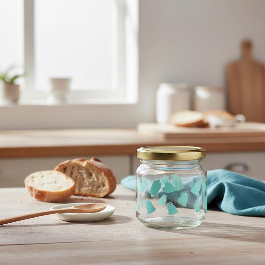 Pullot ja purkit 212 ml pyöreä lasi, kuvio: Kellot, suukappale: Twist-Off (TO 66)