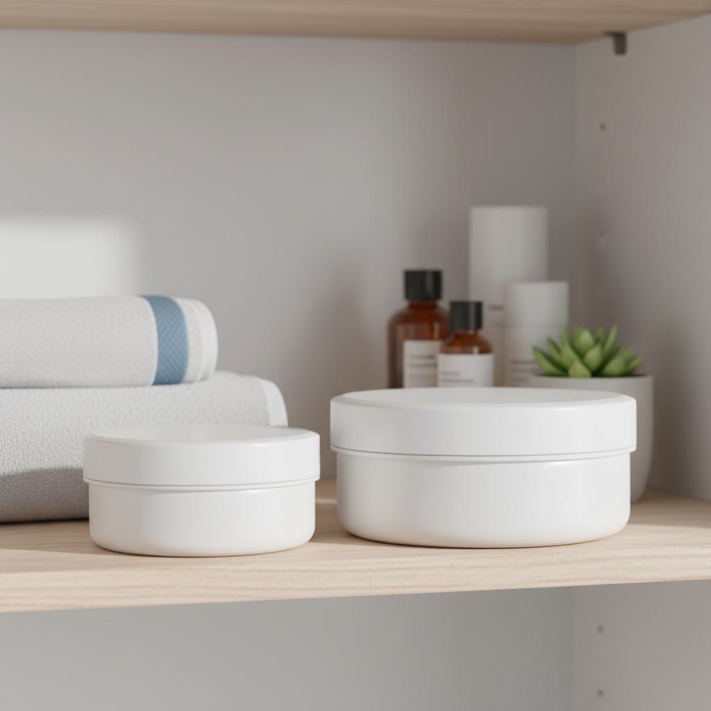 35 ml muovipurkki 'White Line' – kompakti, hygieeninen ja monikäyttöinen