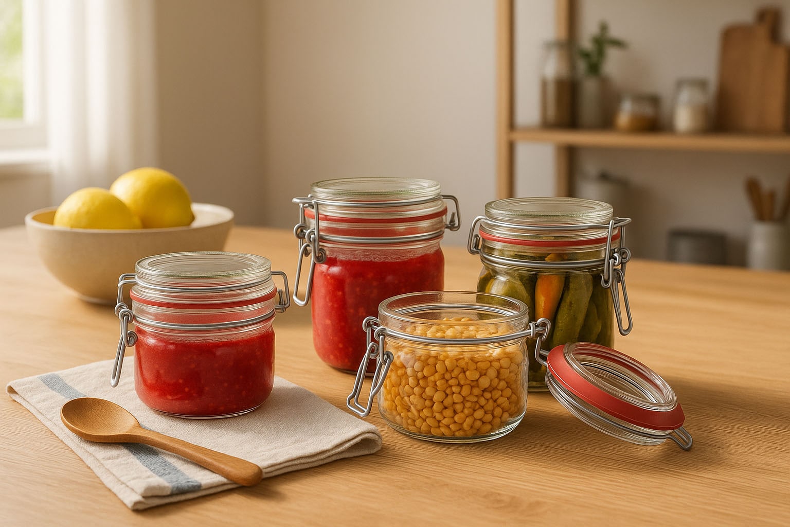 Lankakannelliset purkit soveltuvat erinomaisesti kotitekoisten erikoisuuksien, kuten hillojen, chutneyjen tai säilöttyjen vihannesten keittämiseen ja konservointiin. Ne tarjoavat myös hygienisen ja tyylikkään ratkaisun kuivien elintarvikkeiden, kuten myslin, jauhojen tai palkokasvien, säilytykseen.