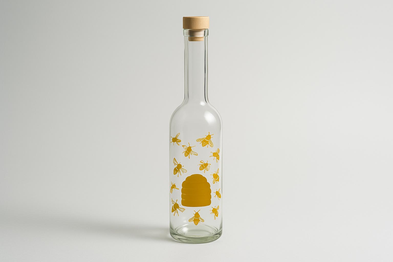 Pullot ja purkit 500 ml lasipullo 'Opera', kuvio: mehiläiset, suuaukko: korkki