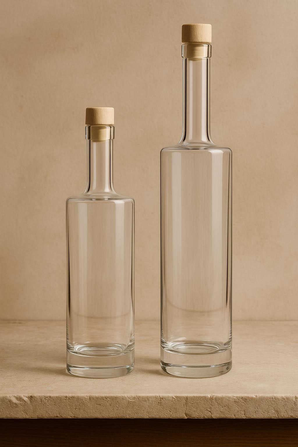 "Titano"-sarja yhdistää voimakkaan läsnäolon ja hienostuneen yksinkertaisuuden, asettaen uusia standardeja korkealaatuisten lasipakkausten maailmassa. Tämä arvokas kirkkaasta lasista valmistettu sylinteripullo hurmaa massiivisella lasipohjallaan, joka tarjoaa paitsi vakautta myös visuaalista syvyyttä ja eksklusiivisuutta. Saatavana koossa 500 ja 700 ml, "Titano" sopii täydellisesti korkealaatuisille väkeville alkoholijuomille, arvokkaille likööreille ja luonnetta omaaville tisleille. Korkkikorkki takaa klassisen ja turvallisen sulkemisen – sopivat sulkimet ovat saatavilla valikoimassamme. Vankalla eleganssillaan ja ajattomalla estetiikallaan "Titano" on ihanteellinen valinta vaativille merkeille, jotka arvostavat laatua ja ilmaisukykyä.