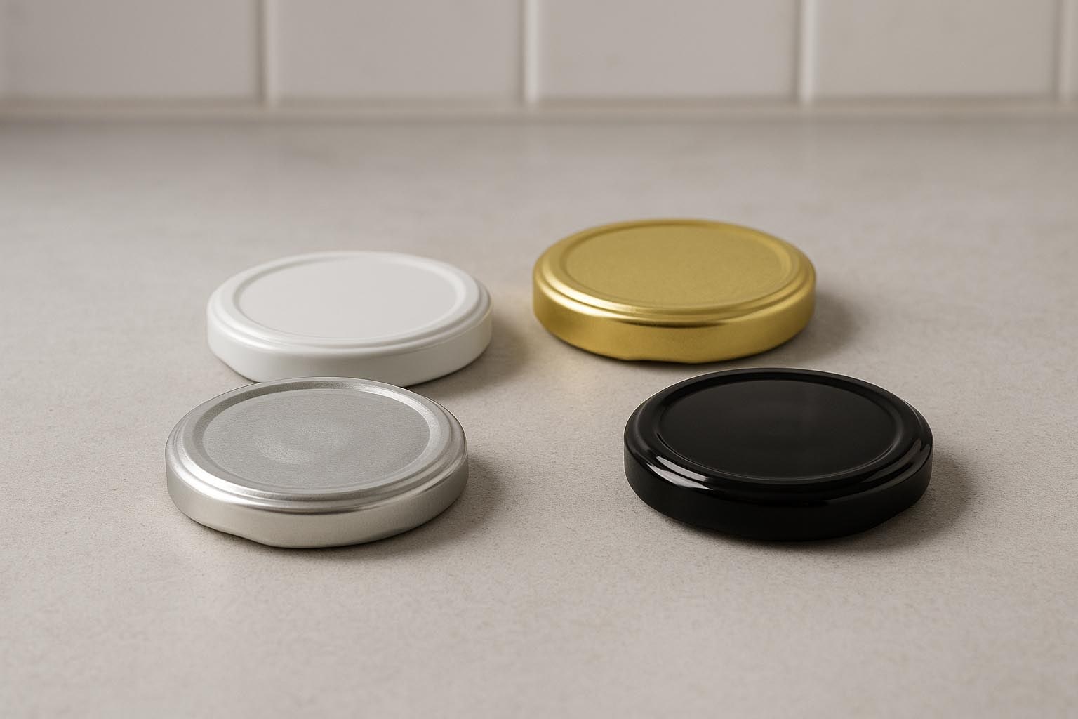 Pullot ja purkit Twist-off-kansi, valkoinen pelti, hopea, suulle: TO 43